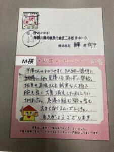 M様、今回は貴重なご縁を頂いて、本当に有難うございました!
