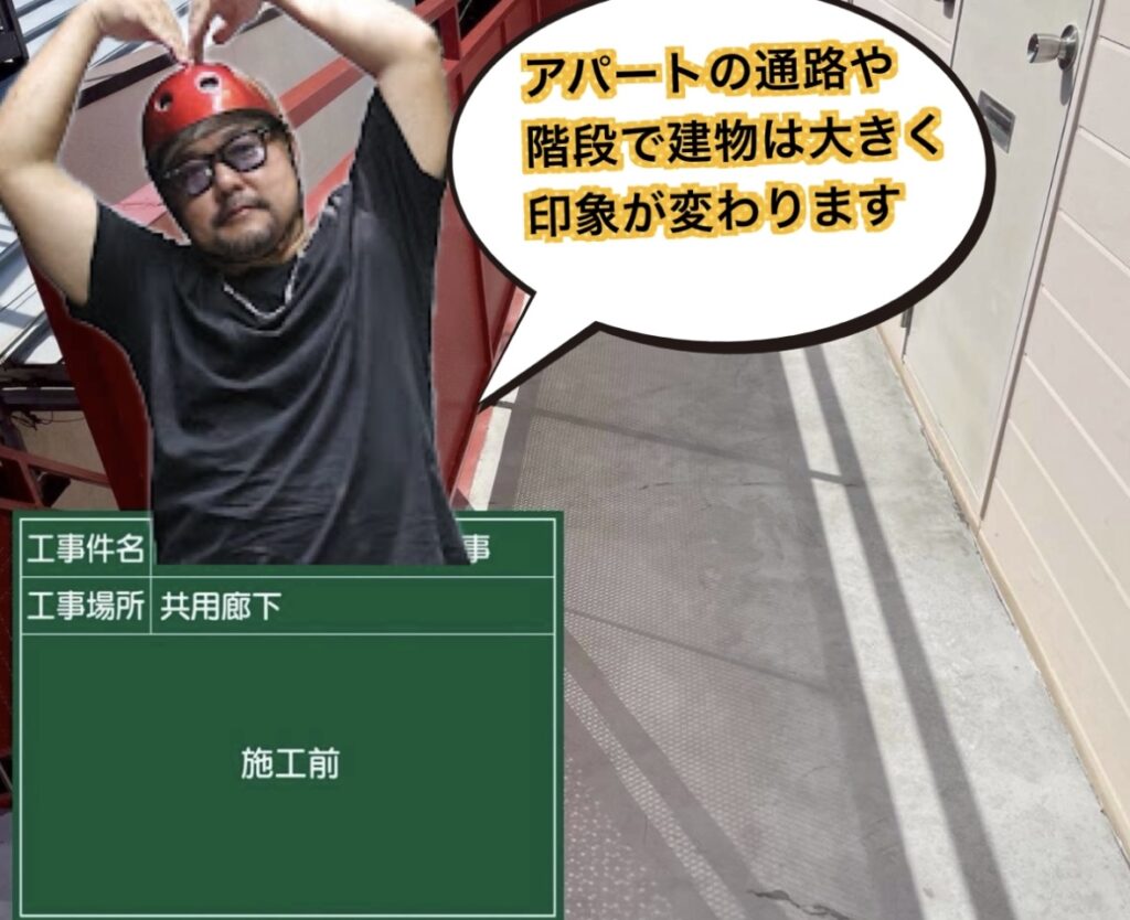 町田市アパート改修事例|共用廊下・階段を長尺シートで安全&美観アップ